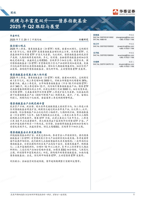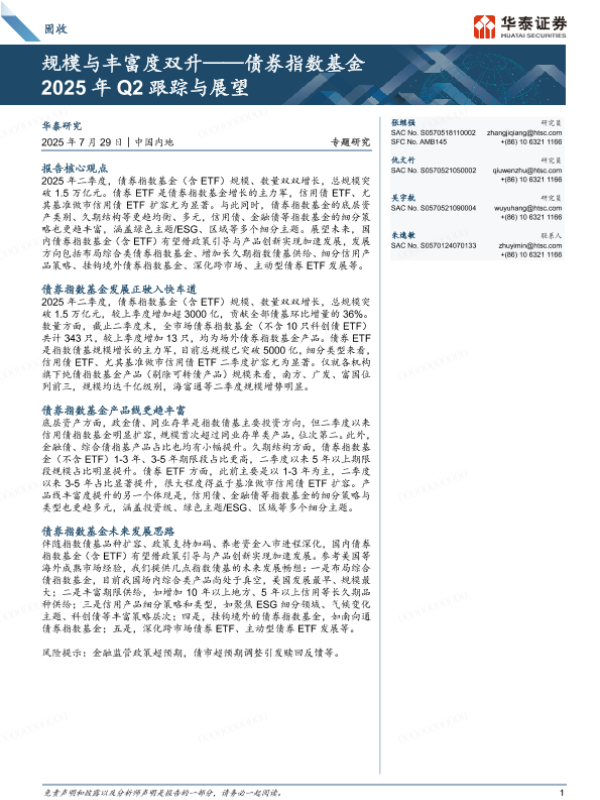 【华泰证券】【202507】规模与丰富度双升——债券指数基金 2025年 Q2跟踪与展望-15页