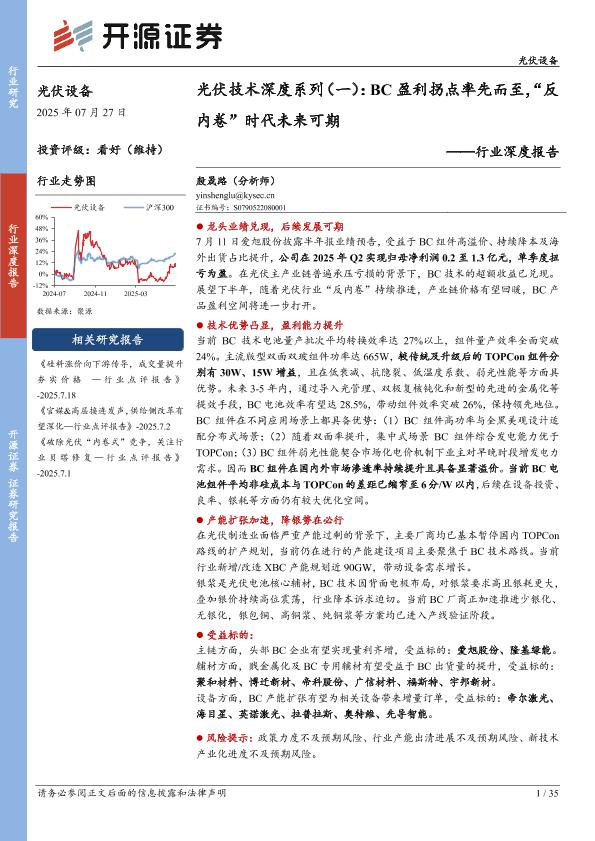 【开源证券】【202507】光伏技术深度系列(一):BC盈利拐点率先而至,“反内卷”时代未来可期-35页