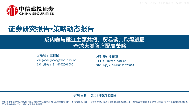 【中信建投证券】【202507】全球大类资产配置策略:反内卷与雅江主题共振,贸易谈判取得进展-25页
