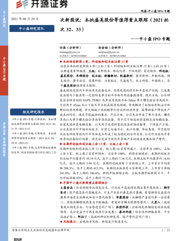 【开源证券】【20210829】中小盘IPO专题:次新股说,本批盛美股份等值得重点跟踪(2021批次32、33)-21页