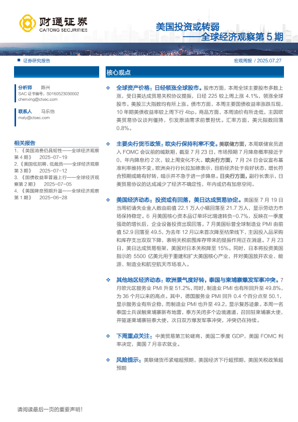 【财通证券】【202507】美国投资或转弱-10页