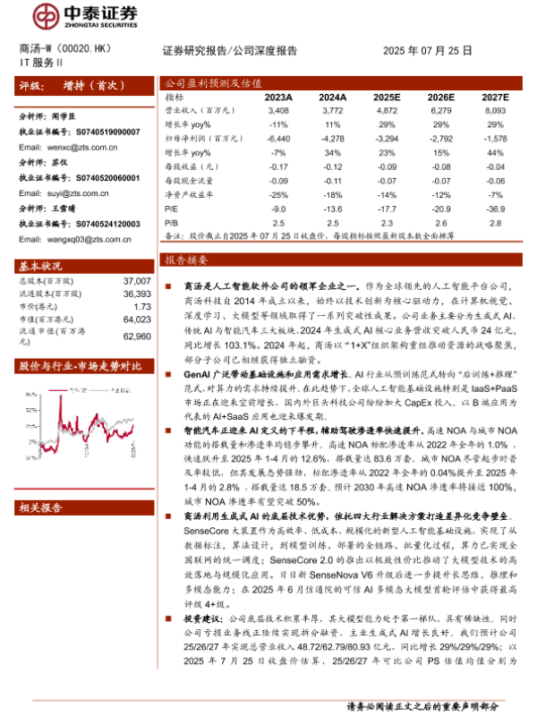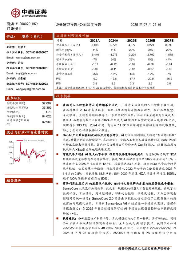 【中泰证券】【202507】商汤-W(0020.HK)AI领军企业,“大装置+大模型”构筑稀缺底层优势-30页