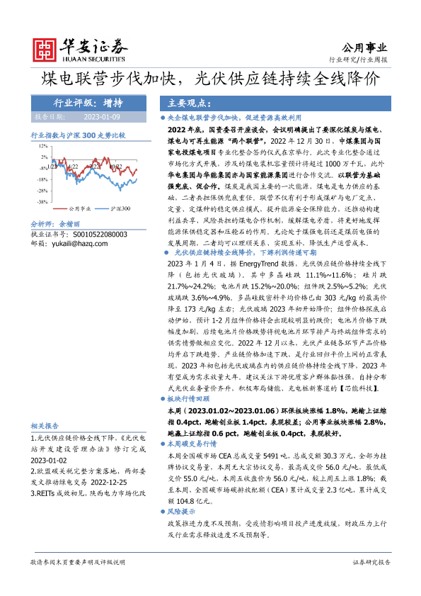 【华安证券】【20230109】公用事业行业周报:煤电联营步伐加快,光伏供应链持续全线降价-15页