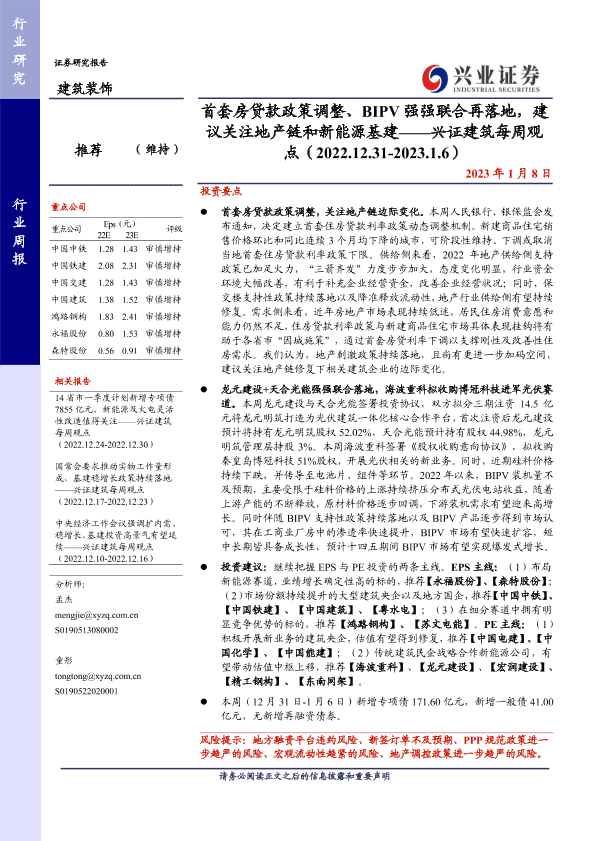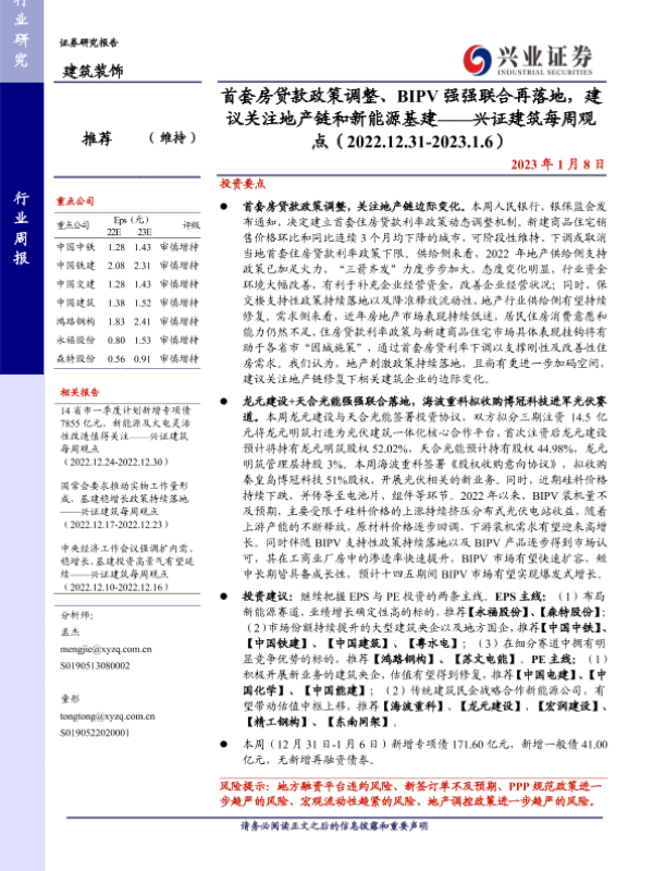 【兴业证券】【20230108】兴证建筑每周观点:首套房贷款政策调整、BIPV强强联合再落地,建议关注地产链和新能源基建-37页