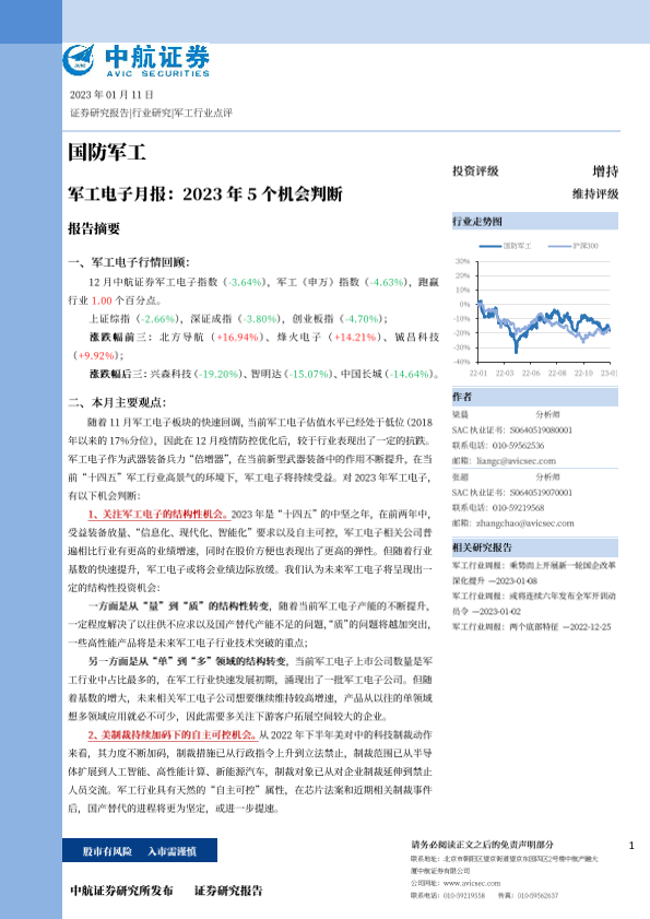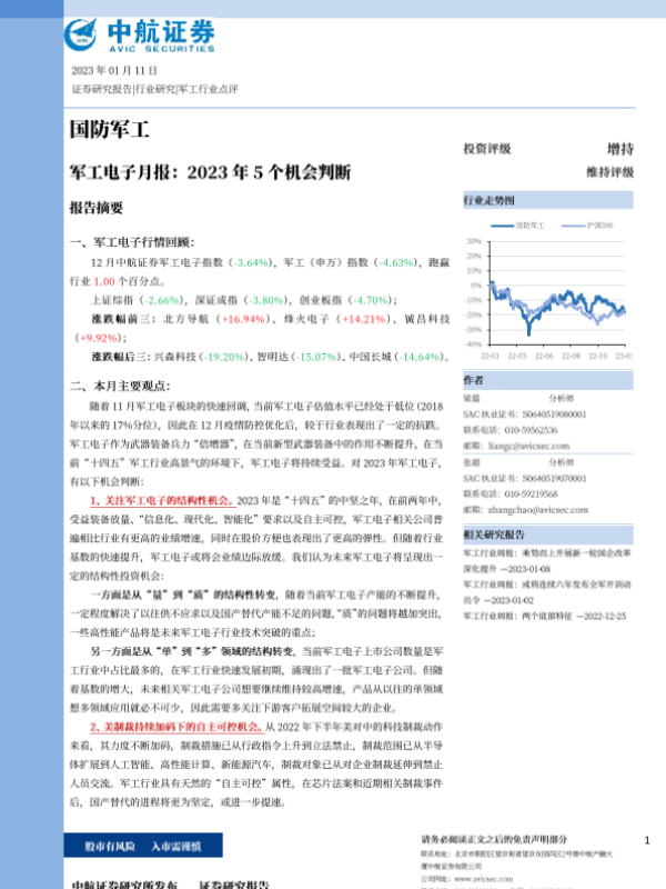 【中航证券】【20230111】军工电子行业月报:2023年5个机会判断-16页