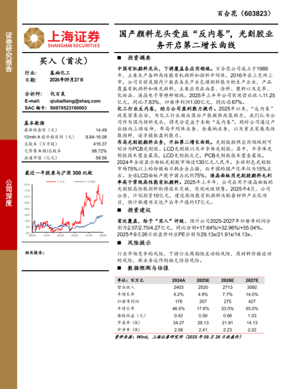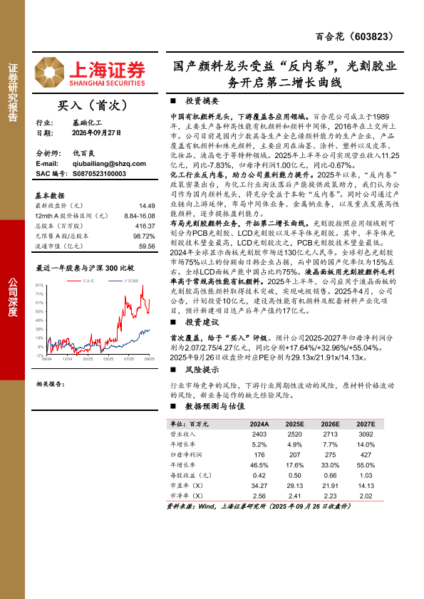 【上海证券】【202509】国产颜料龙头受益“反内卷”,光刻胶业务开启第二增长曲线-20页