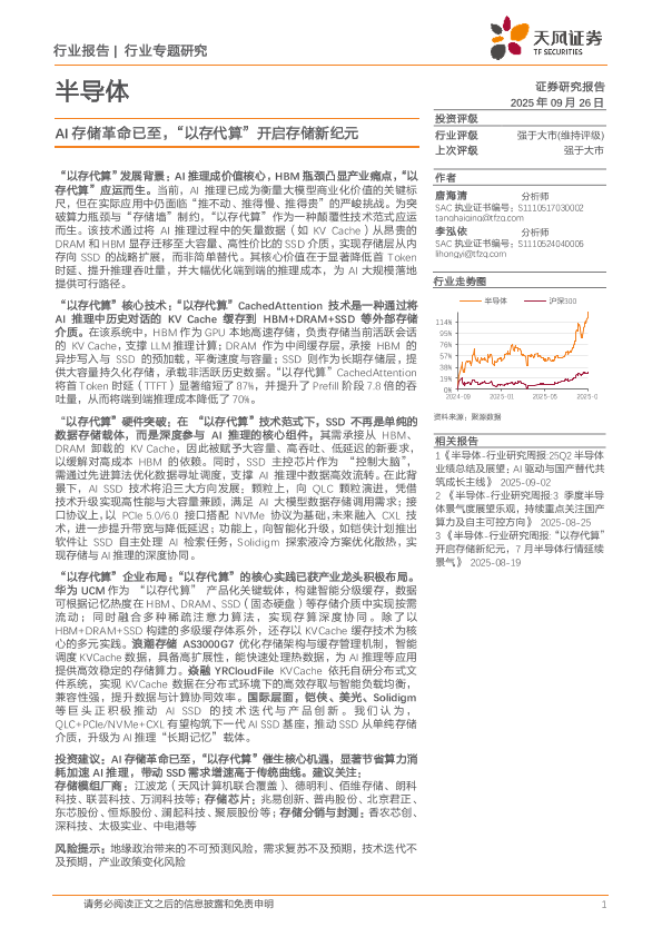 【天风证券】【202509】半导体行业专题研究:AI存储革命已至,“以存代算”开启存储新纪元-24页