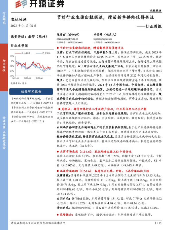 【开源证券】【20230108】农林牧渔行业周报:节前行业生猪出栏提速,鳗苗新季供给值得关注-15页