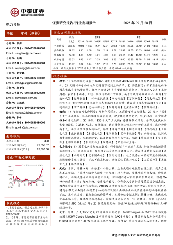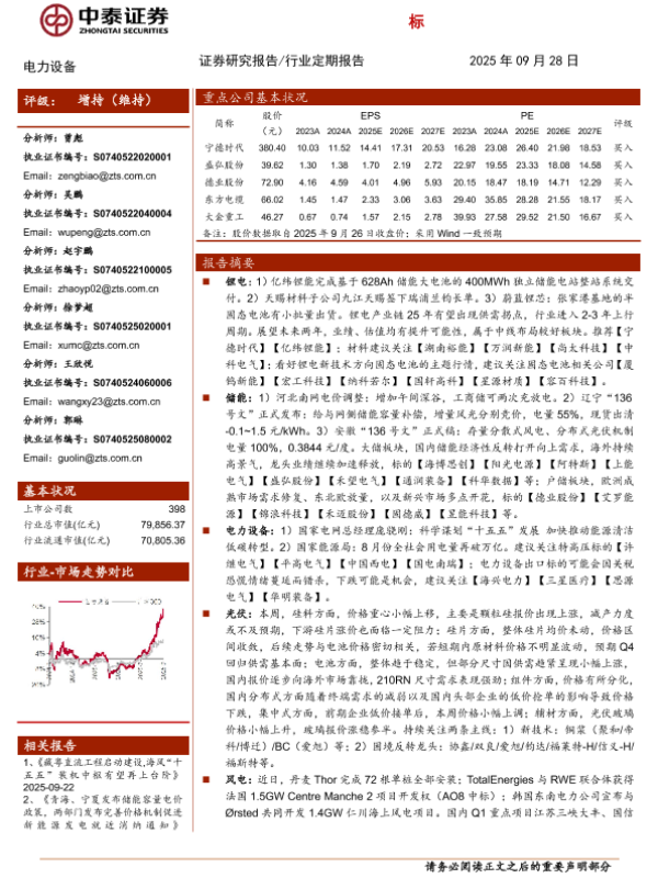 【中泰证券】【202509】电力设备行业定期报告-15页