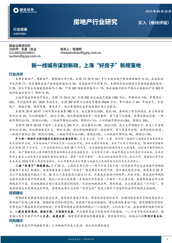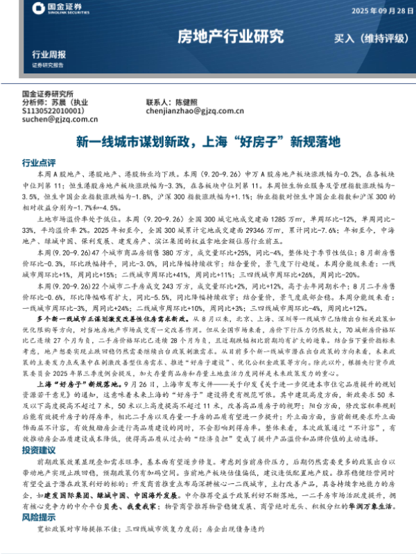 【国金证券】【202509】新一线城市谋划新政,上海“好房子”新规落地-17页