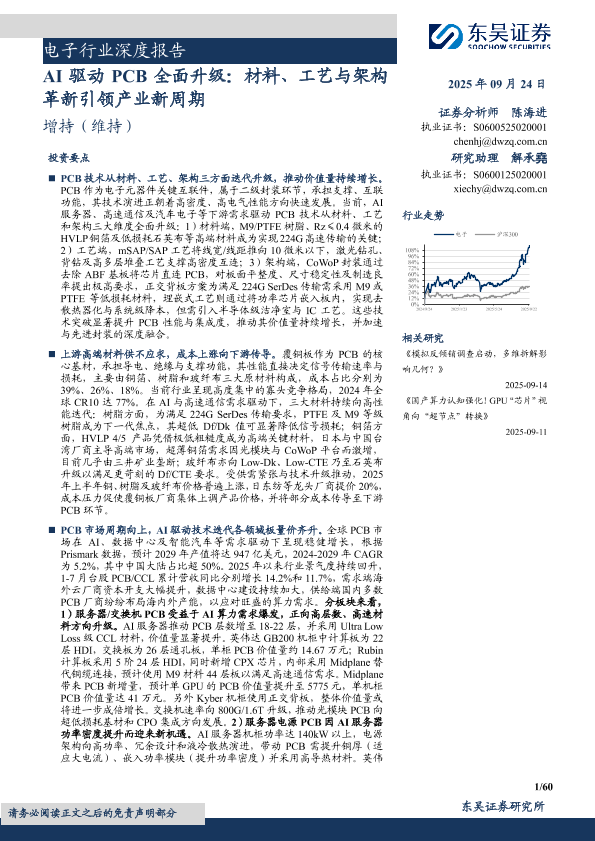 【东吴证券】【202509】AI驱动PCB全面升级:材料、工艺与架构革新引领产业新周期-60页