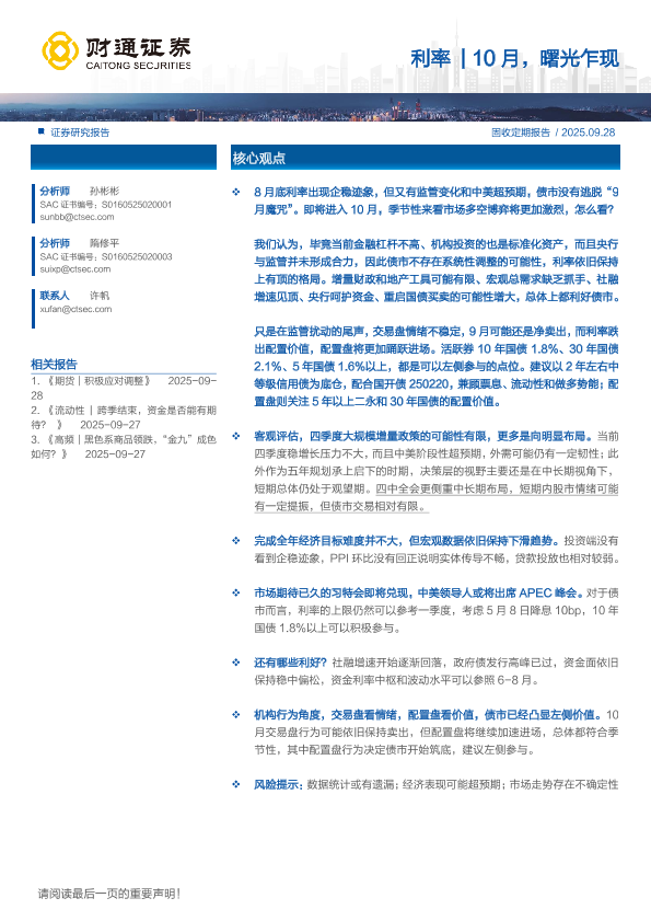 【财通证券】【202509】利率|10月,曙光乍现-18页