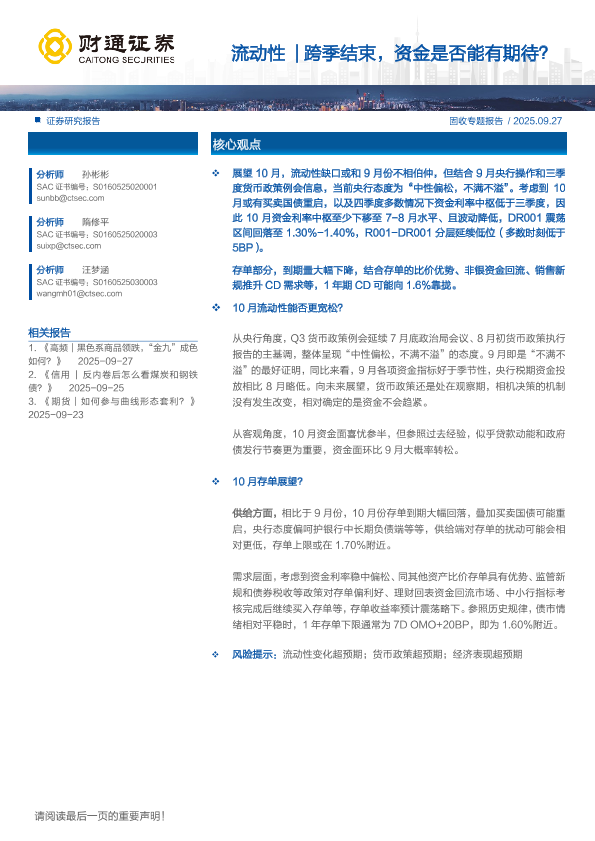【财通证券】【202509】流动性|跨季结束,资金是否能有期待?-21页