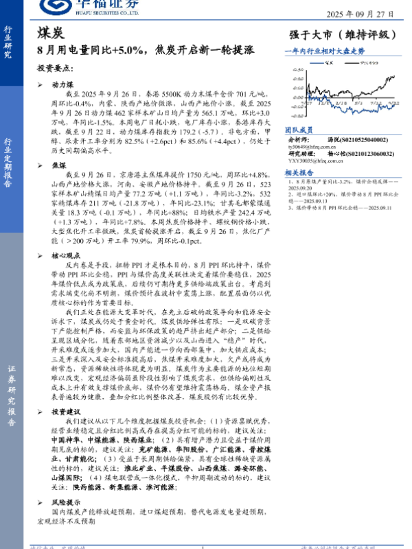 【华福证券】【202509】煤炭行业定期报告:8月用电量同比+5.0%,焦炭开启新一轮提涨-25页