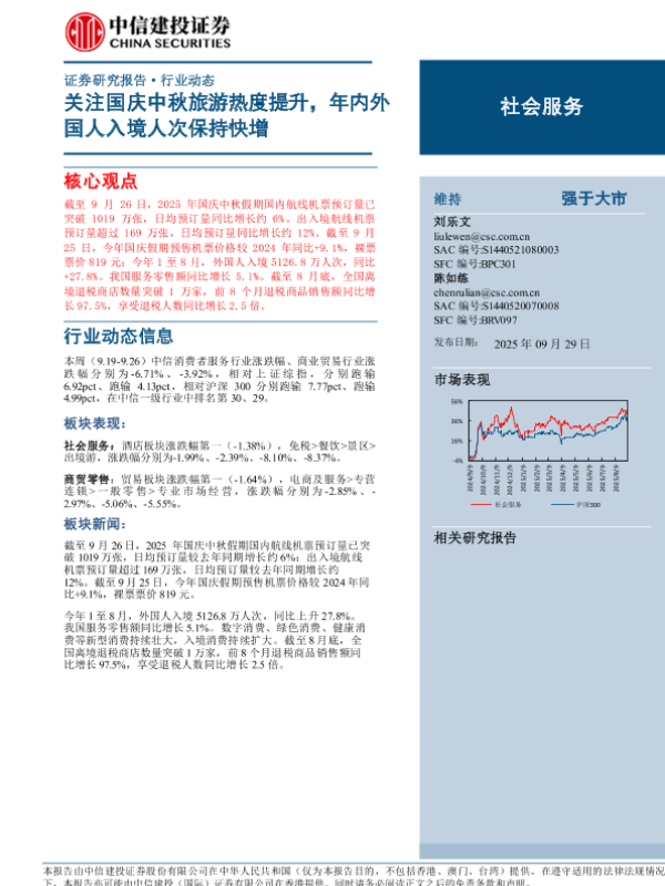 【中信建投证券】【202509】关注国庆中秋旅游热度提升,年内外国人入境人次保持快增-25页