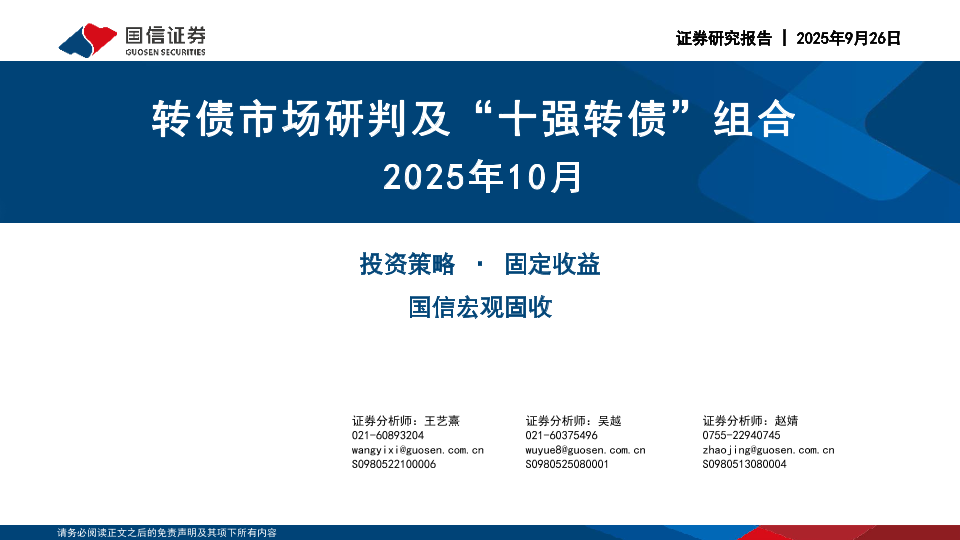【国信证券】【202510】2025年10月转债市场研判及“十强转债”组合-30页