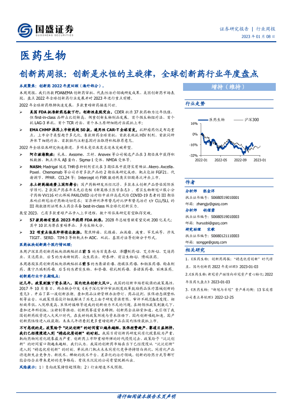 【国盛证券】【20230108】创新药周报:创新是永恒的主旋律,全球创新药行业年度盘点-46页