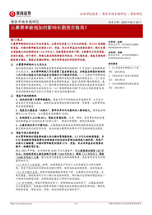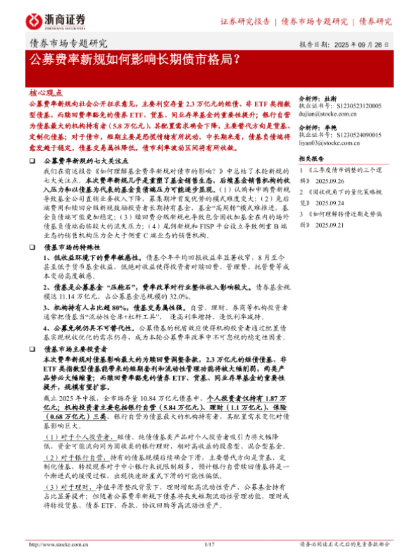 【浙商证券】【202509】债券市场专题研究:公募费率新规如何影响长期债市格局?-17页