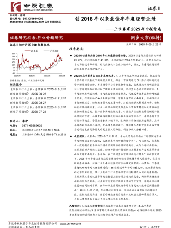 【中原证券】【202509】创2016年以来最佳半年度经营业绩——上市券商2025年中报综述-32页