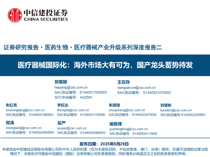 【中信建投证券】【202509】医疗器械国际化:海外市场大有可为,国产龙头蓄势待发-116页