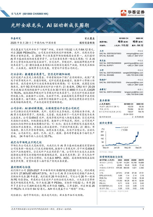 【华泰证券】【202509】长飞光纤(601869 CH/6869 HK)光纤全球龙头,AI驱动新成长周期-38页