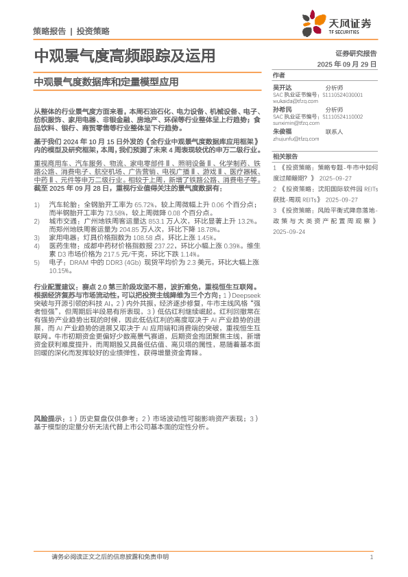 【天风证券】【202509】中观景气度高频跟踪及运用:中观景气度数据库和定量模型应用-17页