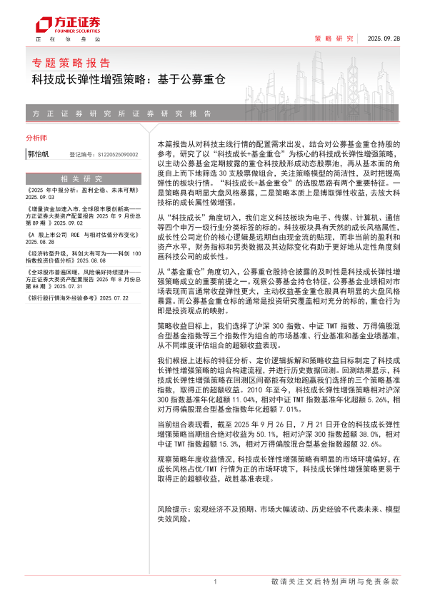 【方正证券】【202509】科技成长弹性增强策略:基于公募重仓-15页
