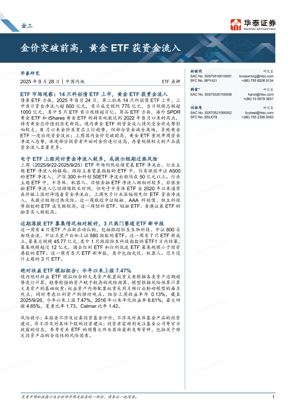【华泰证券】【202509】金价突破前高,黄金ETF获资金流入-12页
