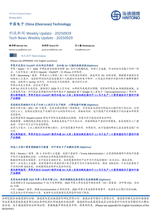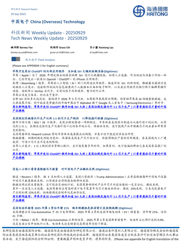 【海通国际】【202509】中国电子 China(Overseas) Technology 科技新闻 Weekly Update- 20250929 Tech News Weekly Update- 20250929-14页