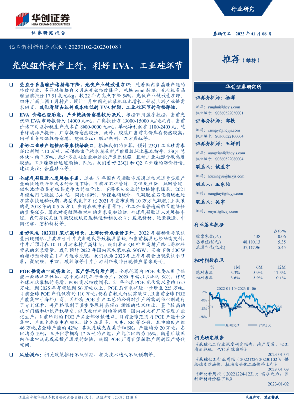 【华创证券】【20230108】化工新材料行业周报:光伏组件排产上行,利好EVA、工业硅环节-48页