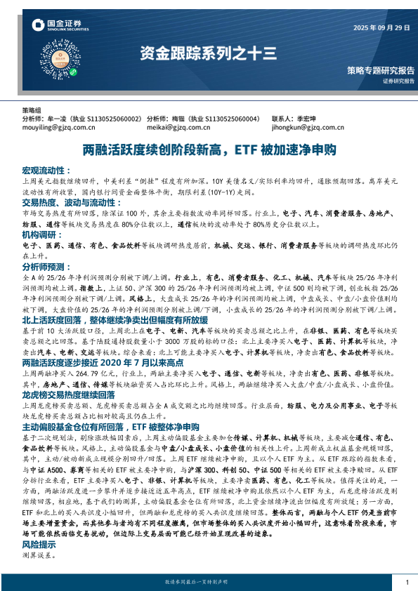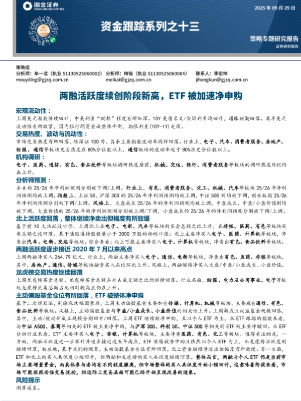 【国金证券】【202509】资金跟踪系列之十三:两融活跃度续创阶段新高,ETF被加速净申购-32页