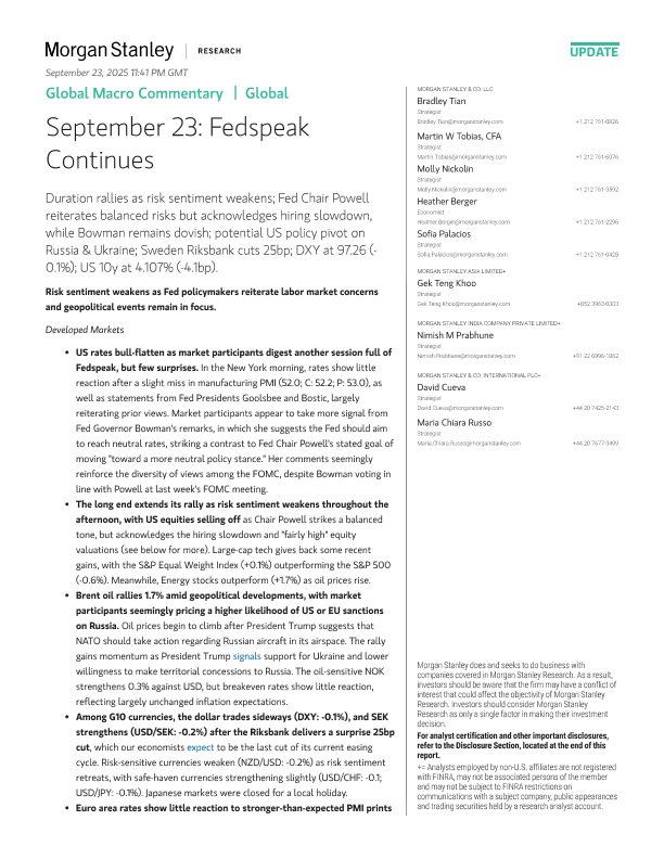 【Morgan Stanley】【202509】Global Macro Commentary | Global M Update September 23 Fedspeak Continues-13页