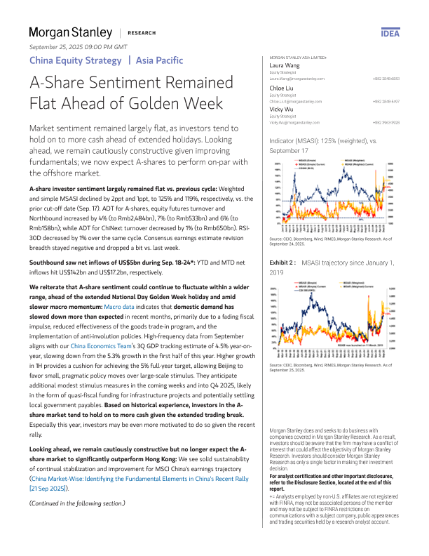 【Morgan Stanley】【202509】A-Share Sentiment Remained Flat Ahead of Golden Week-11页