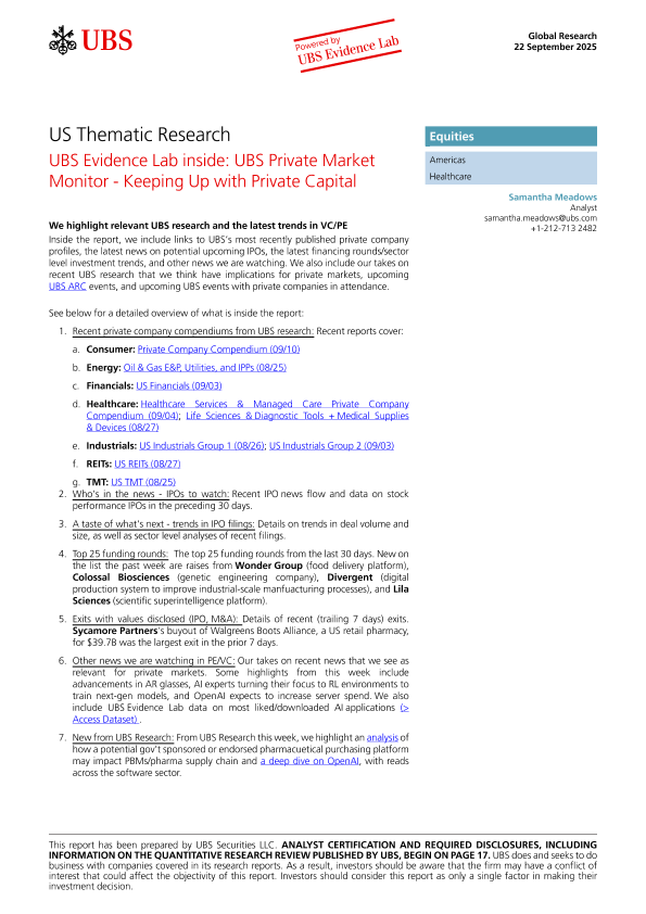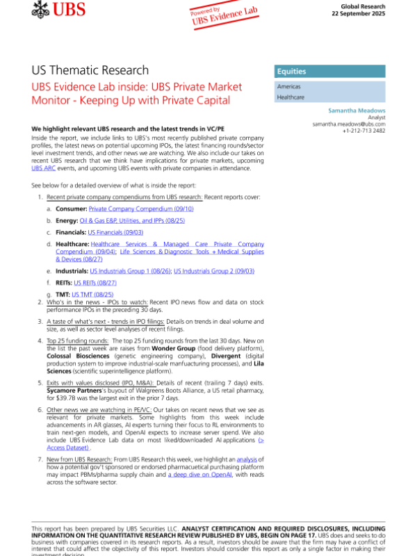 【UBS Securities LLC】【202509】UBS Evidence Lab inside UBS Private Market Monitor- Keeping Up with Private Capital-25页