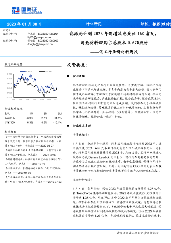 【国海证券】【20230108】化工行业新材料周报:能源局计划2023年新增风电光伏160吉瓦,国瓷材料回购占总股本0.67%股份-35页
