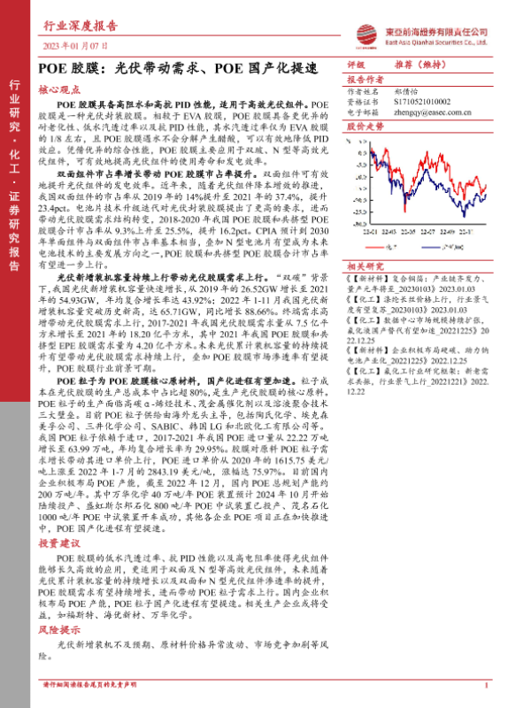 【东亚前海证券】【20230107】化工行业深度报告:POE胶膜,光伏带动需求、POE国产化提速-25页