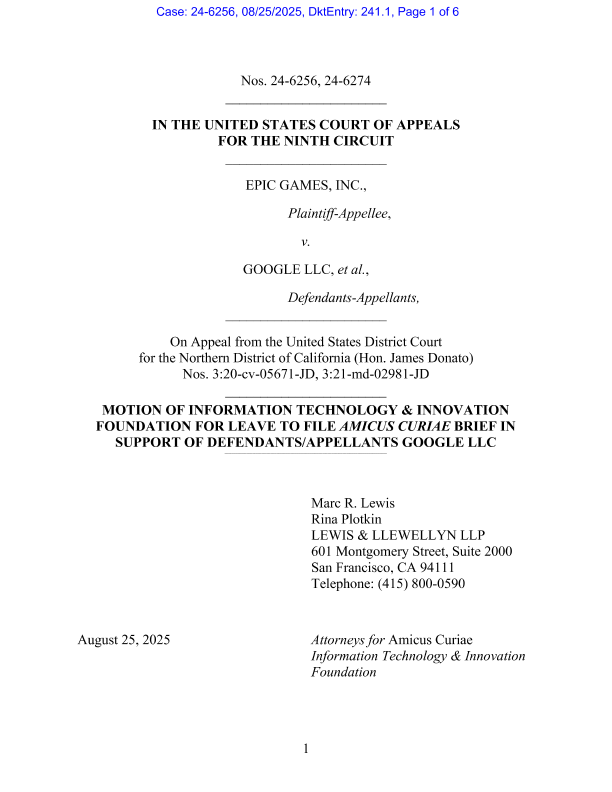 【Information Technology&Innovation Foundation&LEWIS&LLEWELLYN LLP】【202508】MOTION OF INFORMATION TECHNOLOGY& INNOVATION FOUNDATION FOR LEAVE TO FILE AMICUS CURIAE BRIEF IN SUPPORT OF DEFENDANTS/APPELLANTS GOOGLE LLC-25页