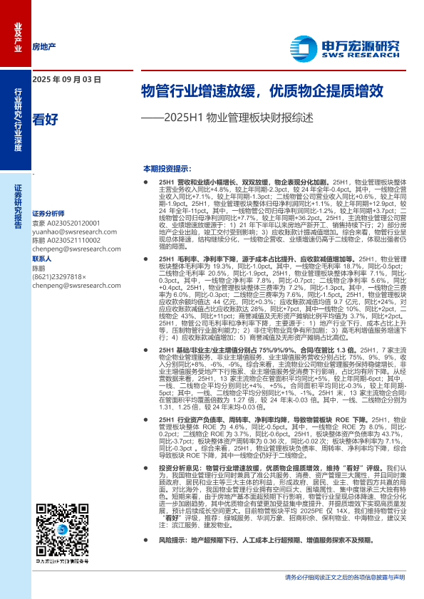 【申万宏源】【202509】物管行业增速放缓,优质物企提质增效-21页