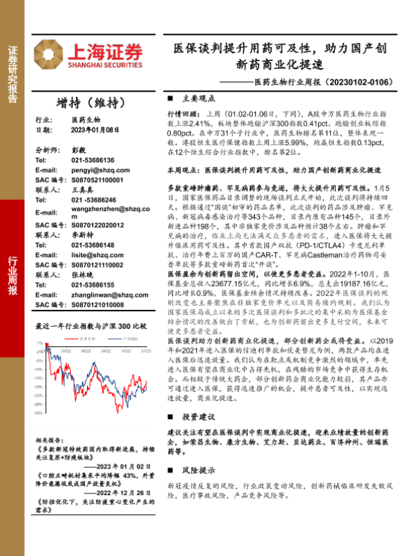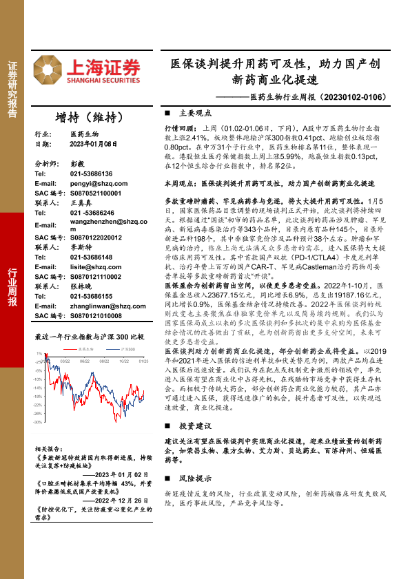 【上海证券】【20230108】医药生物行业周报:医保谈判提升用药可及性,助力国产创新药商业化提速-24页