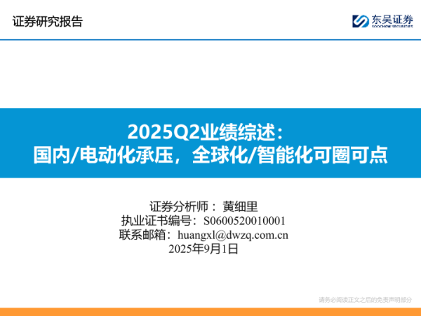 【东吴证券】【202509】2025Q2业绩综述:国内/电动化承压,全球化/智能化可圈可点-103页