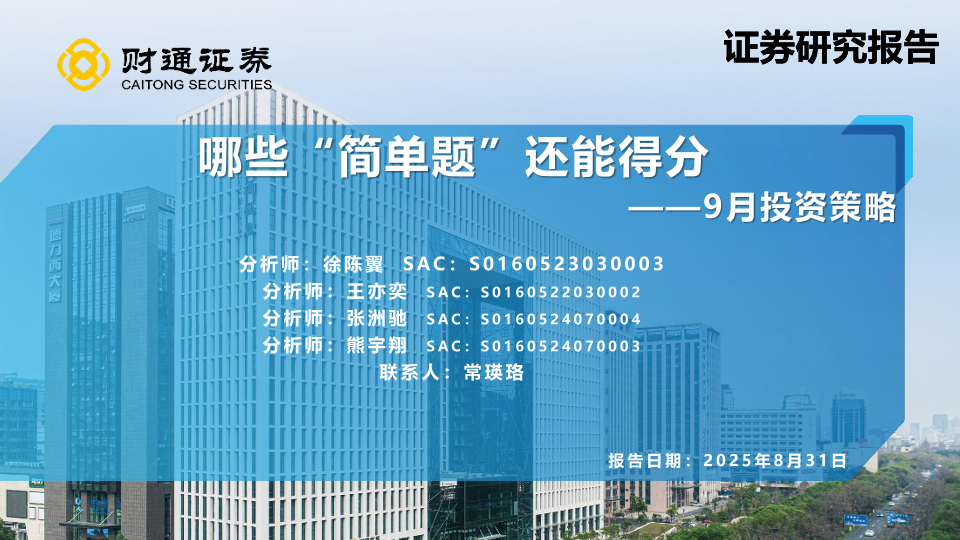 【财通证券】【202508】哪些“简单题”还能得分——9月投资策略-60页