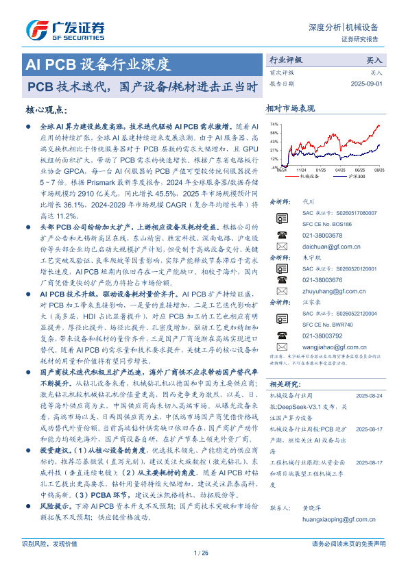 【广发证券】【202509】AI PCB设备行业深度:PCB技术迭代,国产设备/耗材进击正当时-26页