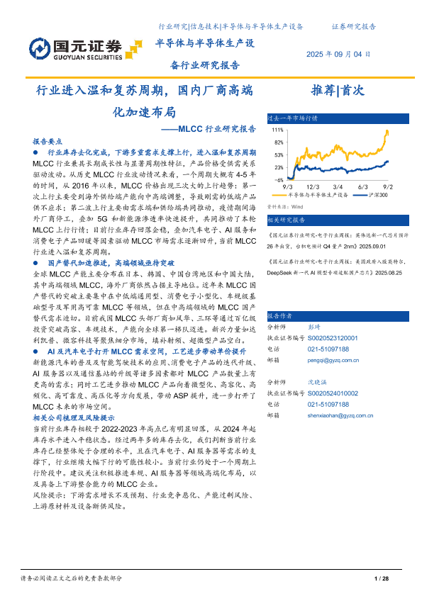【国元证券】【202509】行业进入温和复苏周期,国内厂商高端化加速布局——MLCC行业研究报告-28页