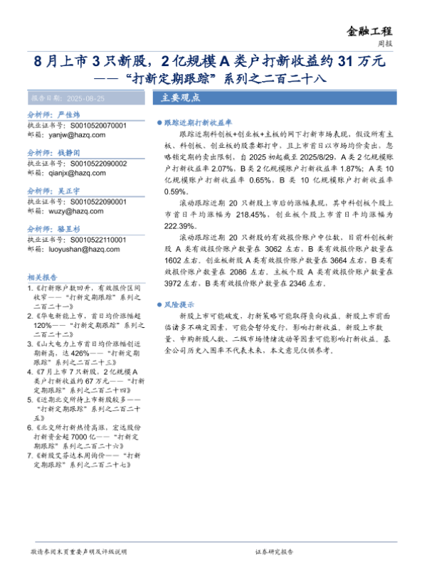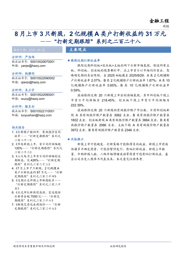 【华安证券】【202508】8月上市3只新股,2亿规模A类户打新收益约31万元-14页