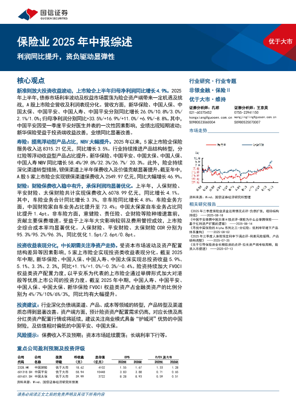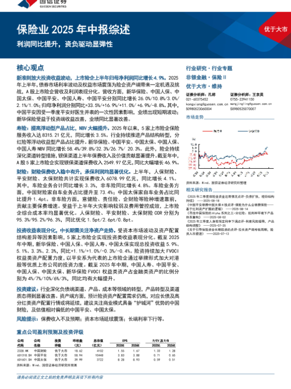 【国信证券】【202509】保险业2025年中报综述:利润同比提升,资负驱动显弹性-16页