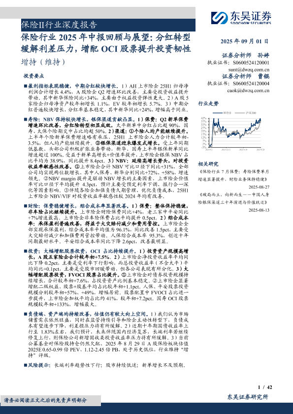 【东吴证券】【202509】保险行业2025年中报回顾与展望:分红转型缓解利差压力,增配OCI股票提升投资韧性-42页