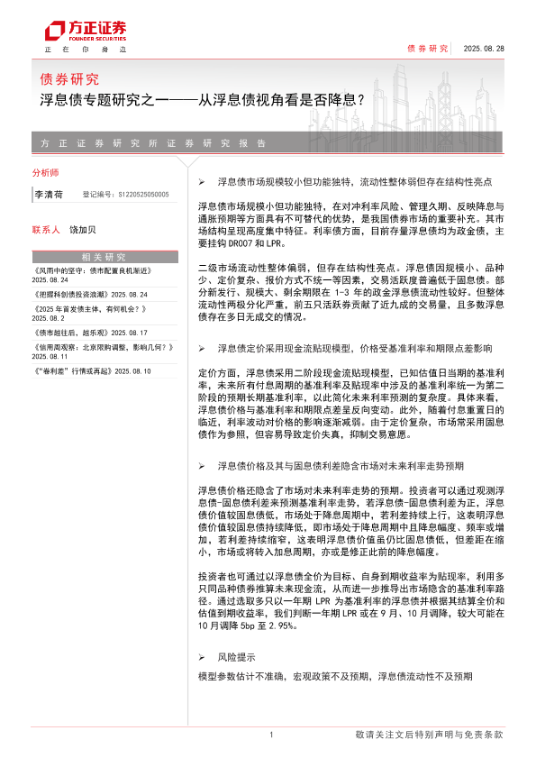 【方正证券】【202508】债券研究:浮息债专题研究之一——从浮息债视角看是否降息?-17页