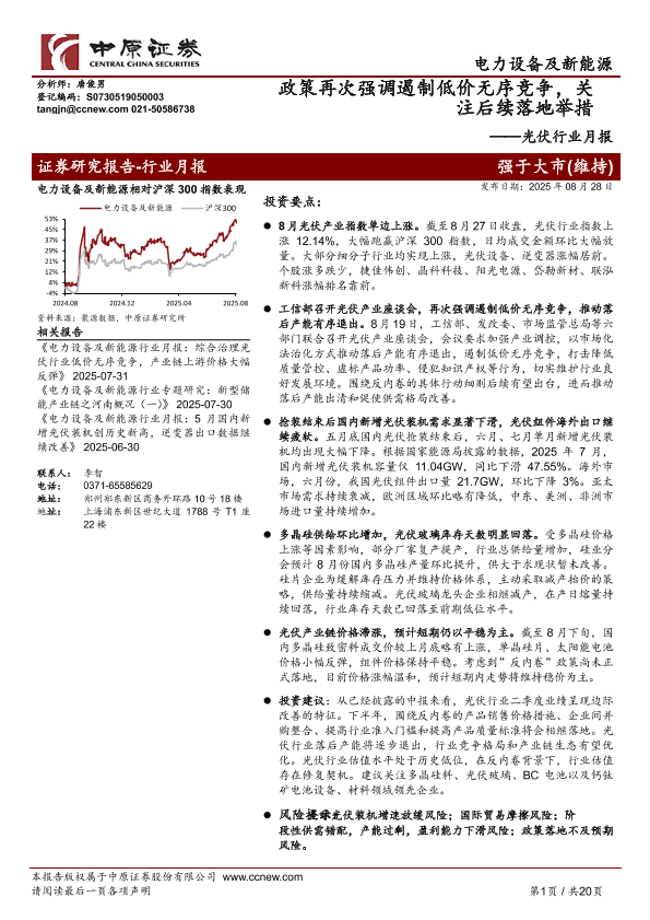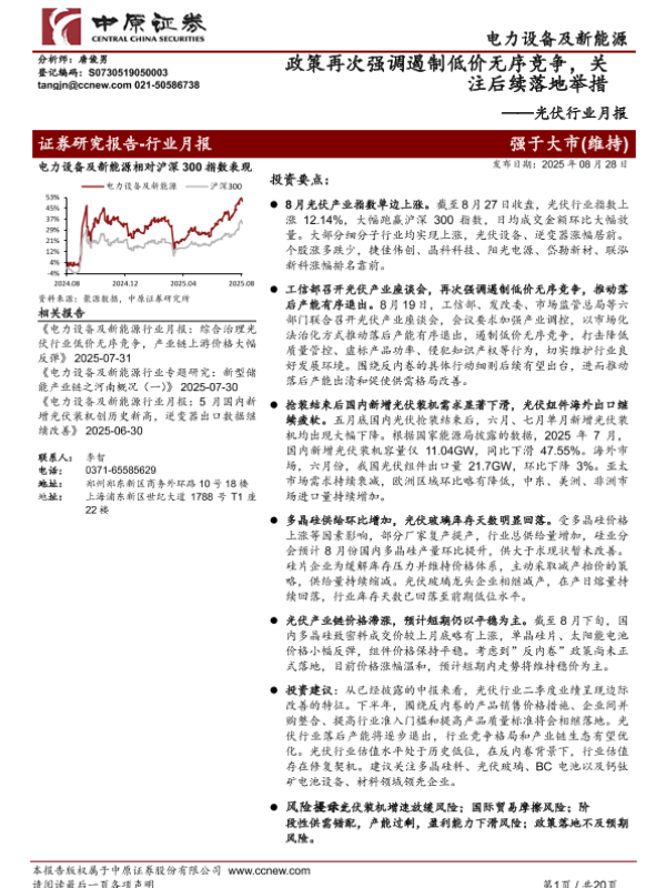 【中原证券】【202508】光伏行业月报:政策再次强调遏制低价无序竞争,关注后续落地举措-20页