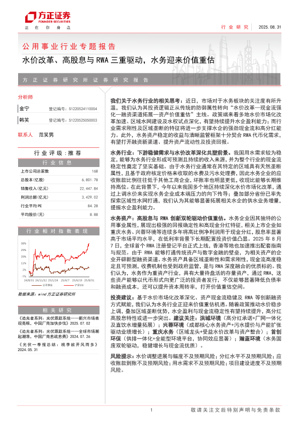 【方正证券】【202508】水价改革、高股息与RWA三重驱动,水务迎来价值重估-11页