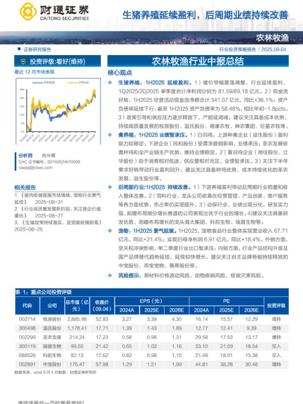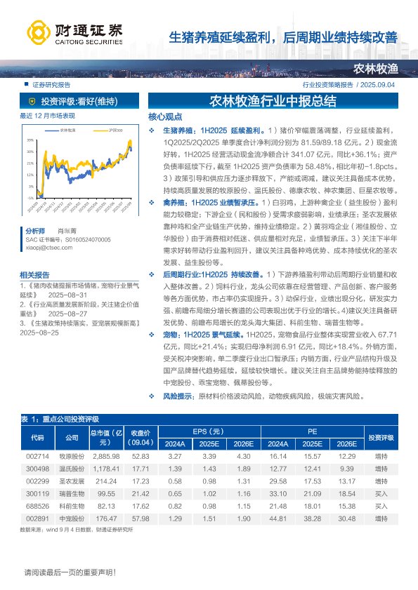 【财通证券】【202509】农林牧渔行业中报总结:生猪养殖延续盈利,后周期业绩持续改善-13页
